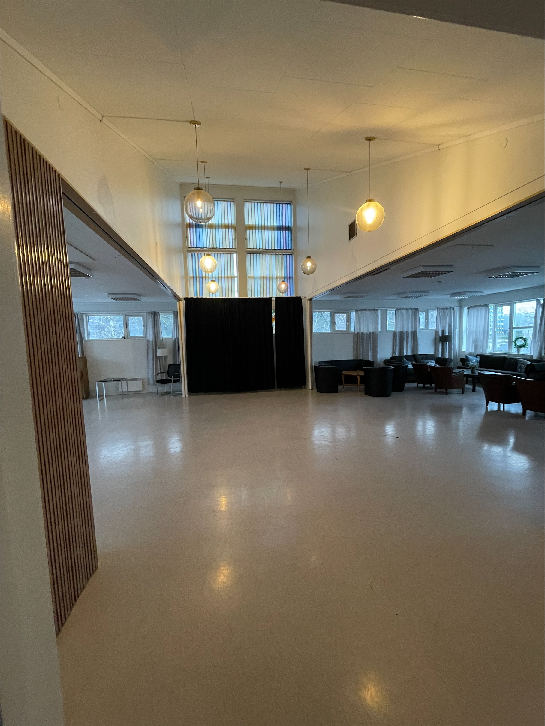 Selskapet må være avsluttet til klokken 23 på kvelden og leietaker rydder og vasker seg ut av lokalet samme dag som utleien skjer.